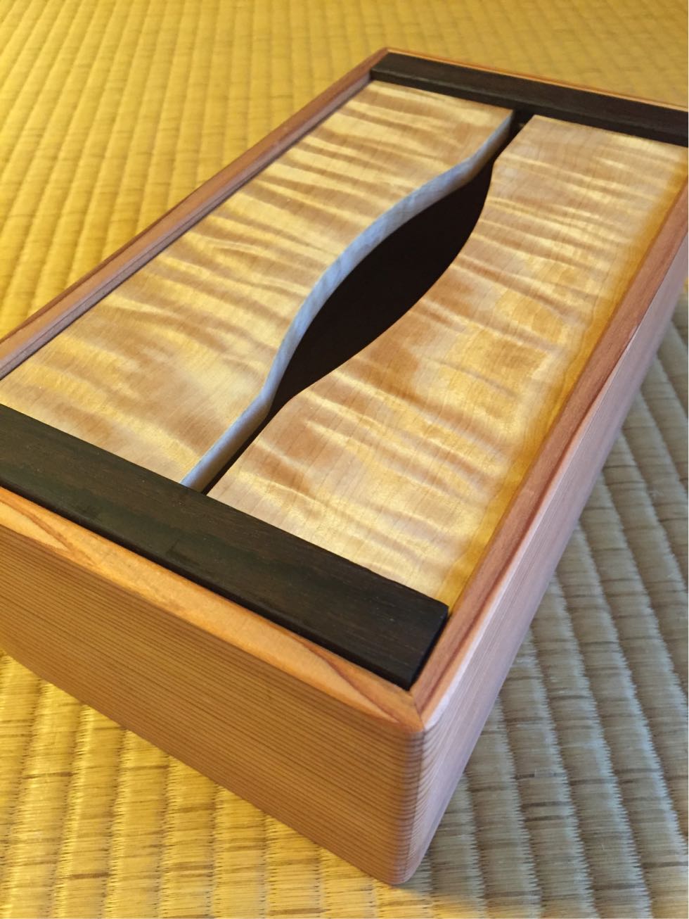 新宮市民の方へ 以前座卓の製作中と書いてたもの少し前になりますが、完成し、納品してまいりました。 これが加工前のケヤキ、一枚板。 この天板の削り出しは毎度苦労する工程です。 今回座卓の脚は、シンプルに、モダンにしてみました。 ホゾを作ります。 ボンドをつけて穴に差し込み。 全体にの雰囲気はこんな感じ。 そして塗装ですが、今回は染める手法で、このケヤキの板をモダンな色に。 なお且つこの染める液体は普段良く口にするものです。 この透明な液体を塗ると、ウォールナットみたいな色にジワジワ変化します。 この色の違い。 そして天板にも 一日経つと。。。 そして手も。。。 これがなかなかとれない。。。 これに塗装を加えるとさらに良くなります。 そして納品させて頂きました。 このお宅にピッタリ。 三年程前に大規模リフォームをさせて頂いたI邸です。 今回も家具の仕事までさせて頂きありがとうございました。 世界に一つの家具。 言葉にすれば大げさですが、いいものですよ!