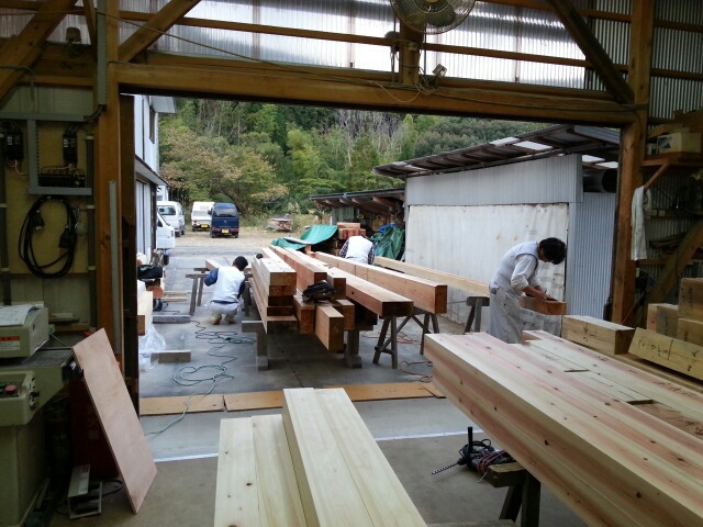 本日、作業場では墨付け、キザミが進んでます。