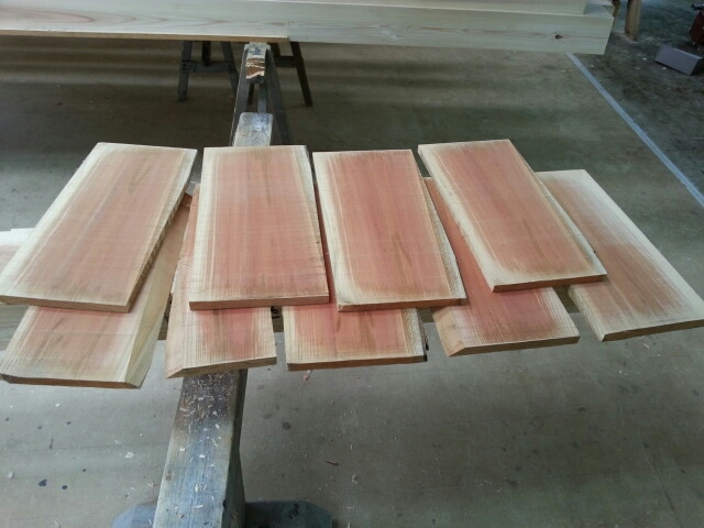 そして少し作業場を離れて、吉田製材さんとこへ。 地棟や太鼓梁の切り落ちを製材してもらうため。 この製材の台車、切る所にレーザーがあたって正確。 そしてこんな感じに製材してもらいました。 切り落ちでも使い方次第で変わるのが木。 さてこれで何ができるでしょう。 その後は吉田さんに分けて頂いた、欅の塊を作業場の帯鋸で製材。 の前に皮をはいで砂を落としてから。 柾目の綺麗な欅の板がとれました。 この欅まだ水気をかなり含んでいたので、先に製材しといて正解だったなと。 乾燥したら何に使うかこれまた楽しみです。 ランキングに参加しています。 倉谷建築を応援して下さる方は、 読み終えた後に↓↓↓クリックをお願いします。 にほんブログ村 新宮市の工務店、倉谷建築のホームページ↓↓↓ HP:http://www.kuratani-kenntiku.com/ PR |
