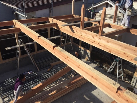 墨付けキザミを担当してくれました赤田大工主導のもと、バッチリと組みあがりました。