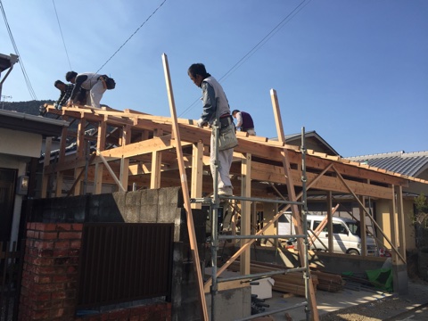 早々に屋根まで出来上がり一安心。